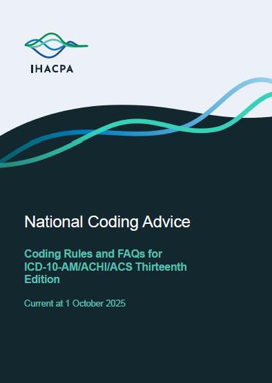 The National Coding Advice contains the Coding Rules and new edition frequently asked questions (FAQs). These are published to facilitate nationally consistent assignment of ICD-10-AM and ACHI codes in the implemented edition of ICD-10-AM/ACHI/ACS. National Coding Advice is published quarterly.